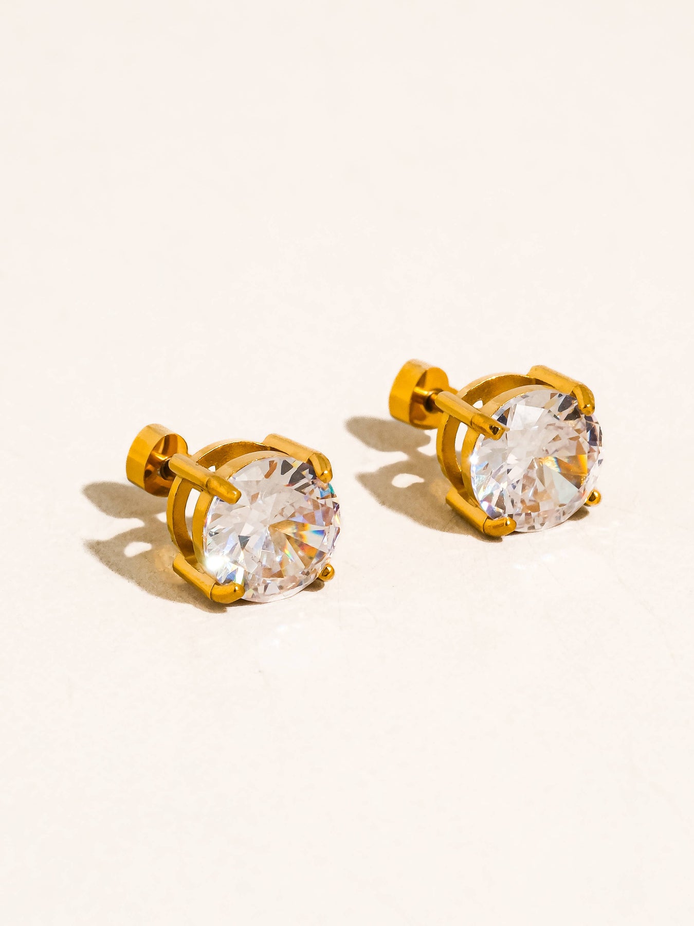 Avenn 18K Gold Non-Tarnish Round CZ Flat Back Earrings