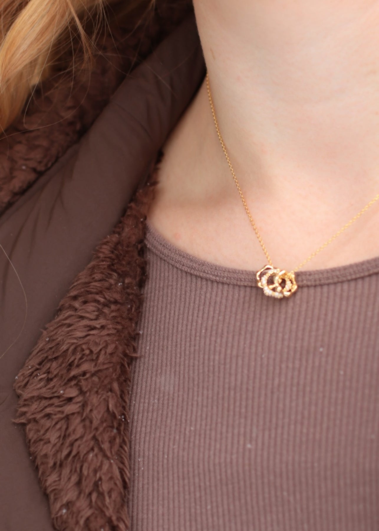 Cz Pave 3 Ring Charms Chain Necklace