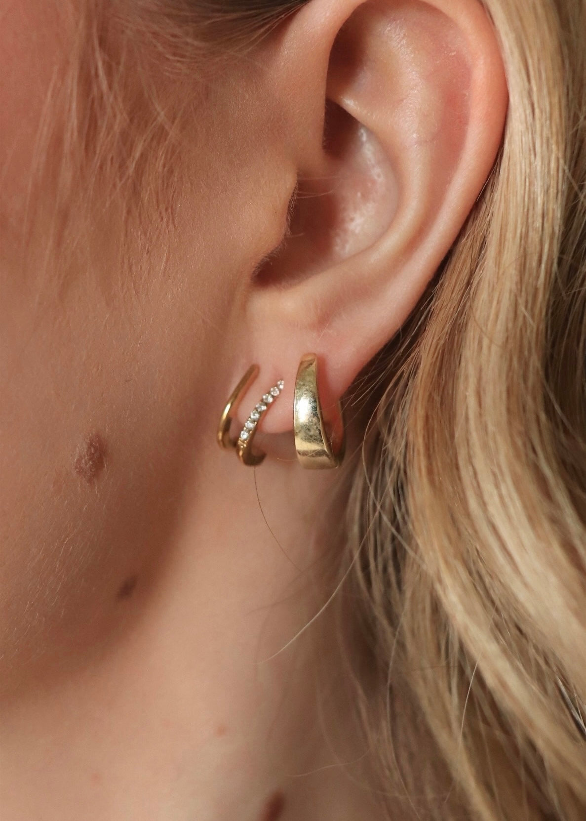 18K Gold Non-Tarnish CZ Double Hoop Stud 18K Gold Plating Stainless Steel Rhinestone Measurement (L x W inch): 0.48inx0.28in - Lead-free, Nickel-safe - Hypoallergenic - Water Resistant