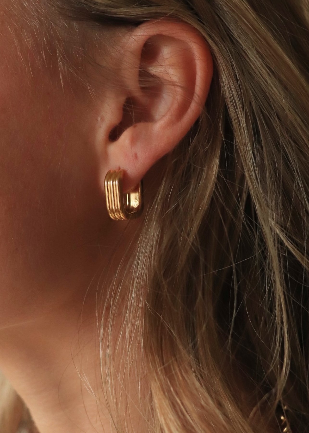 Noa 18K Gold Non-Tarnish Stripe Hoop Earring
