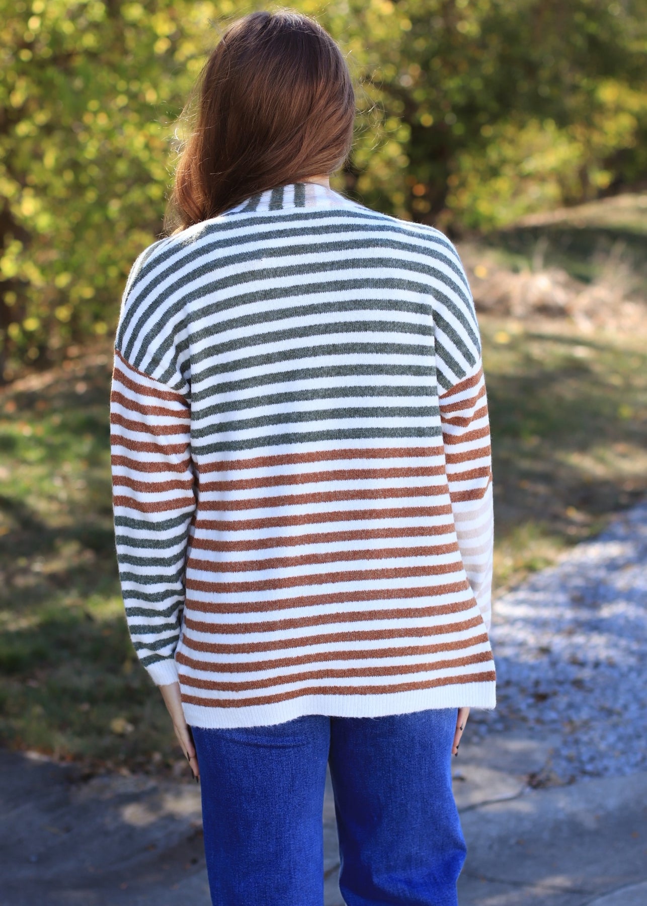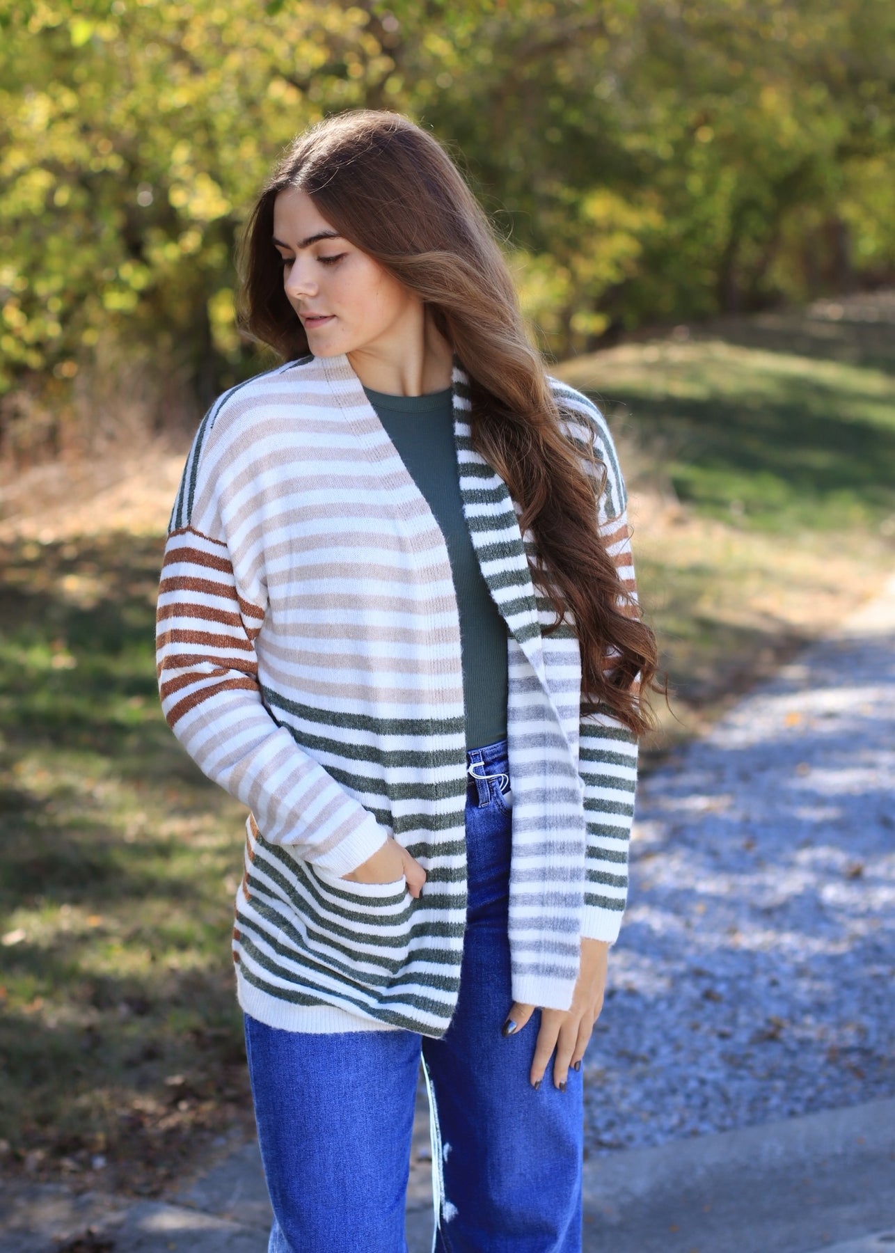 Colorwave Open Front Cardigan in TAUPE/OLIVE