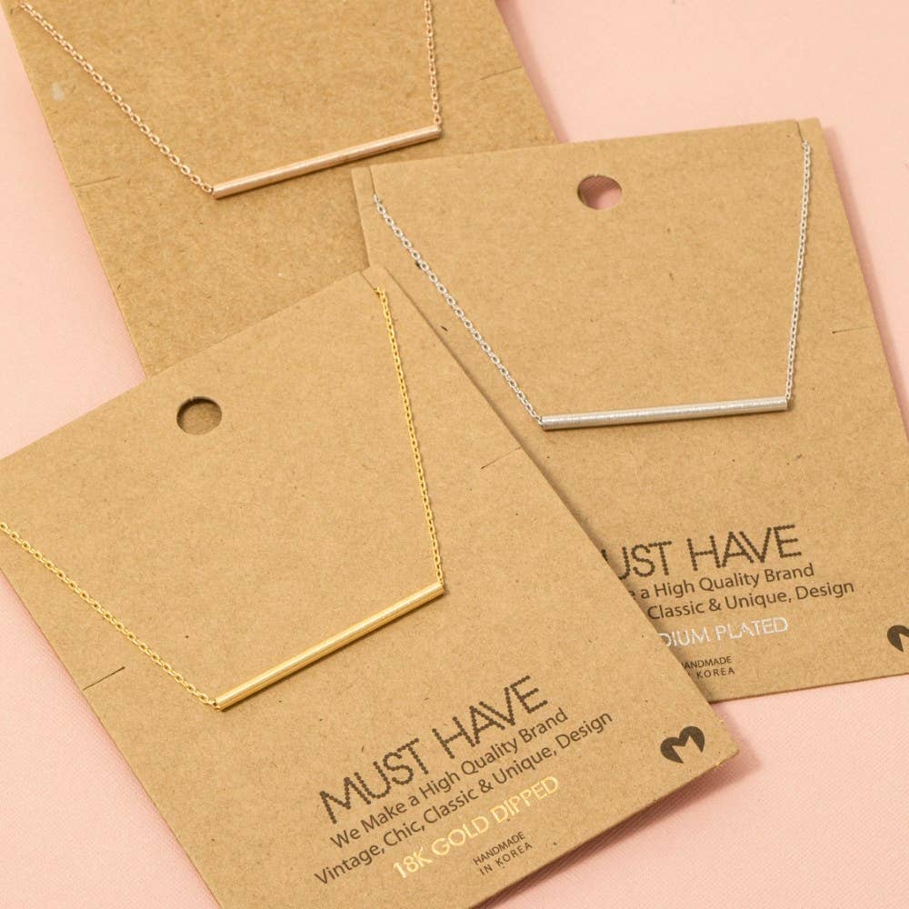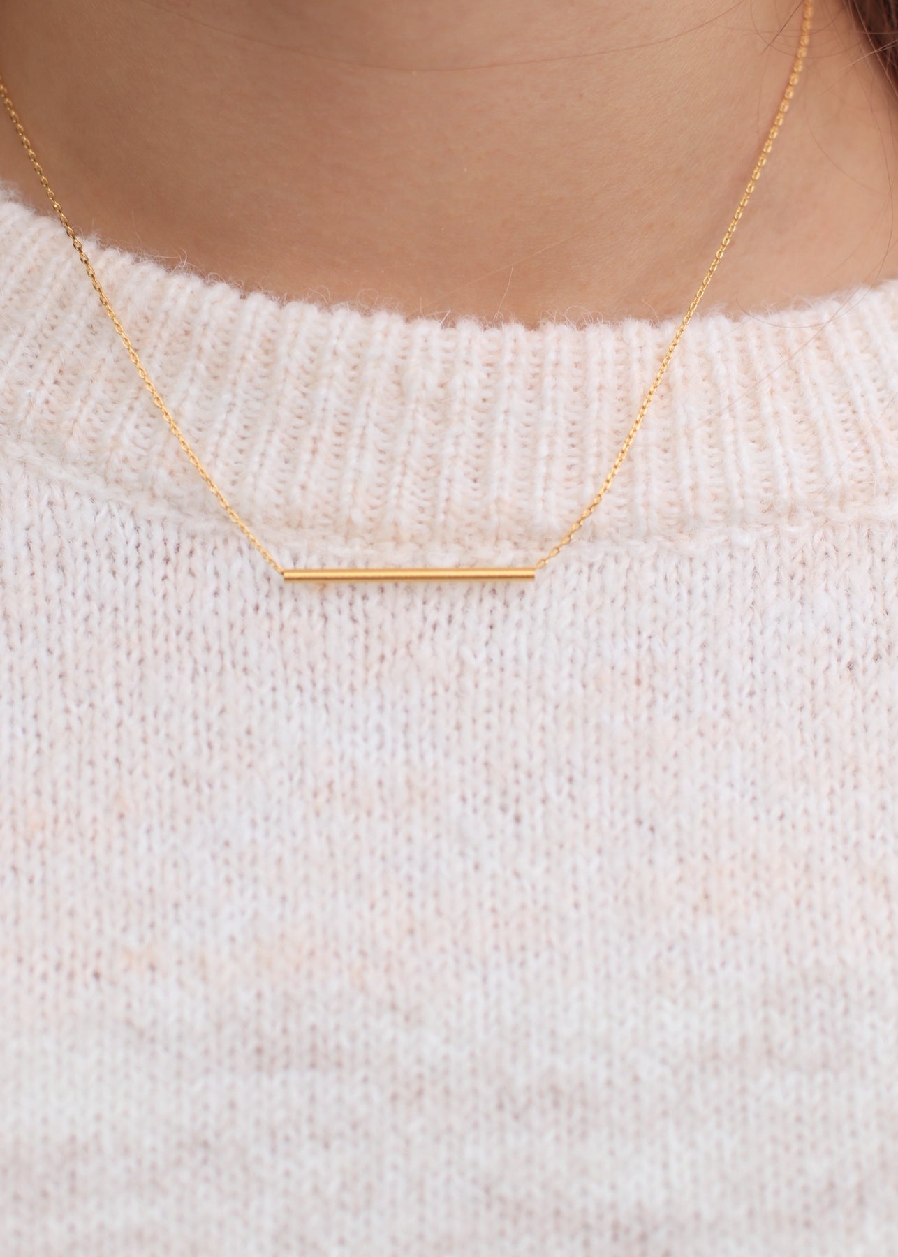 This trending necklace features a fashionable cylinder bar pendant necklace style. Celebrate the art of accessorizing with this piece that effortlessly encapsulates modern trends.