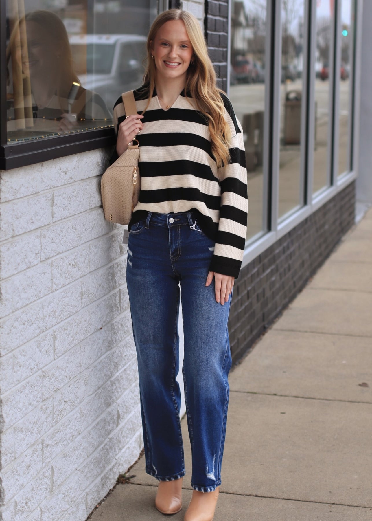 Meet your new everyday favorite. The Open Road Wide Leg Jean features a flattering high-rise fit with a modern wide leg silhouette that feels both timeless and on-trend. Crafted in a rich dark wash with just the right amount of stretch, these jeans offer all-day comfort without losing their shape. Subtle distressing adds a lived-in edge, while classic five-pocket styling and a zipper fly keep the look effortlessly versatile. With a 10" rise and a 31" inseam (size 5/26), this pair is perfect for dressing up with a blouse or keeping it casual with a tee and sneakers.