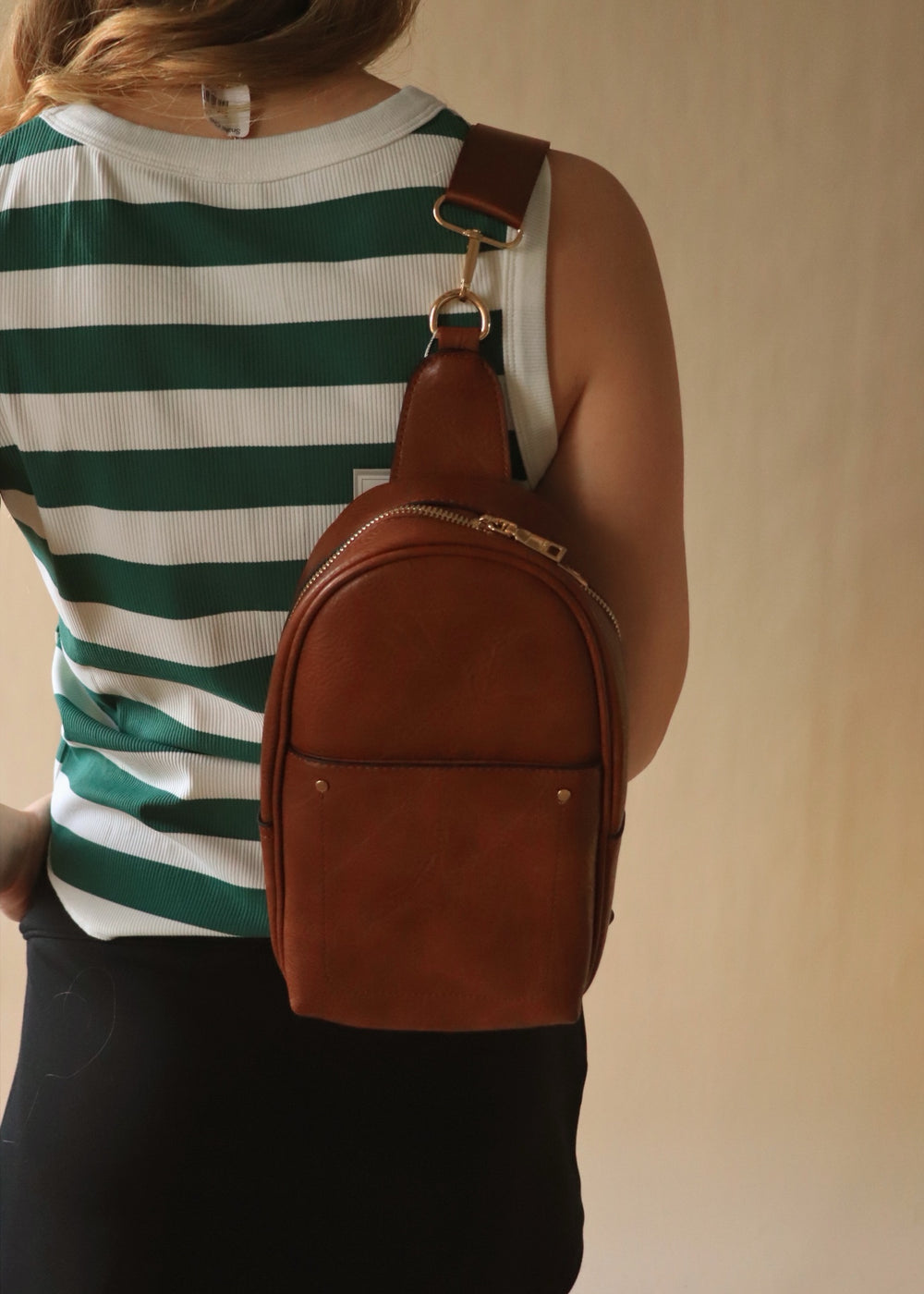 CLEARANCE FINAL SALE Sophia Sling Bag w/ Flapover Pocket in Brown