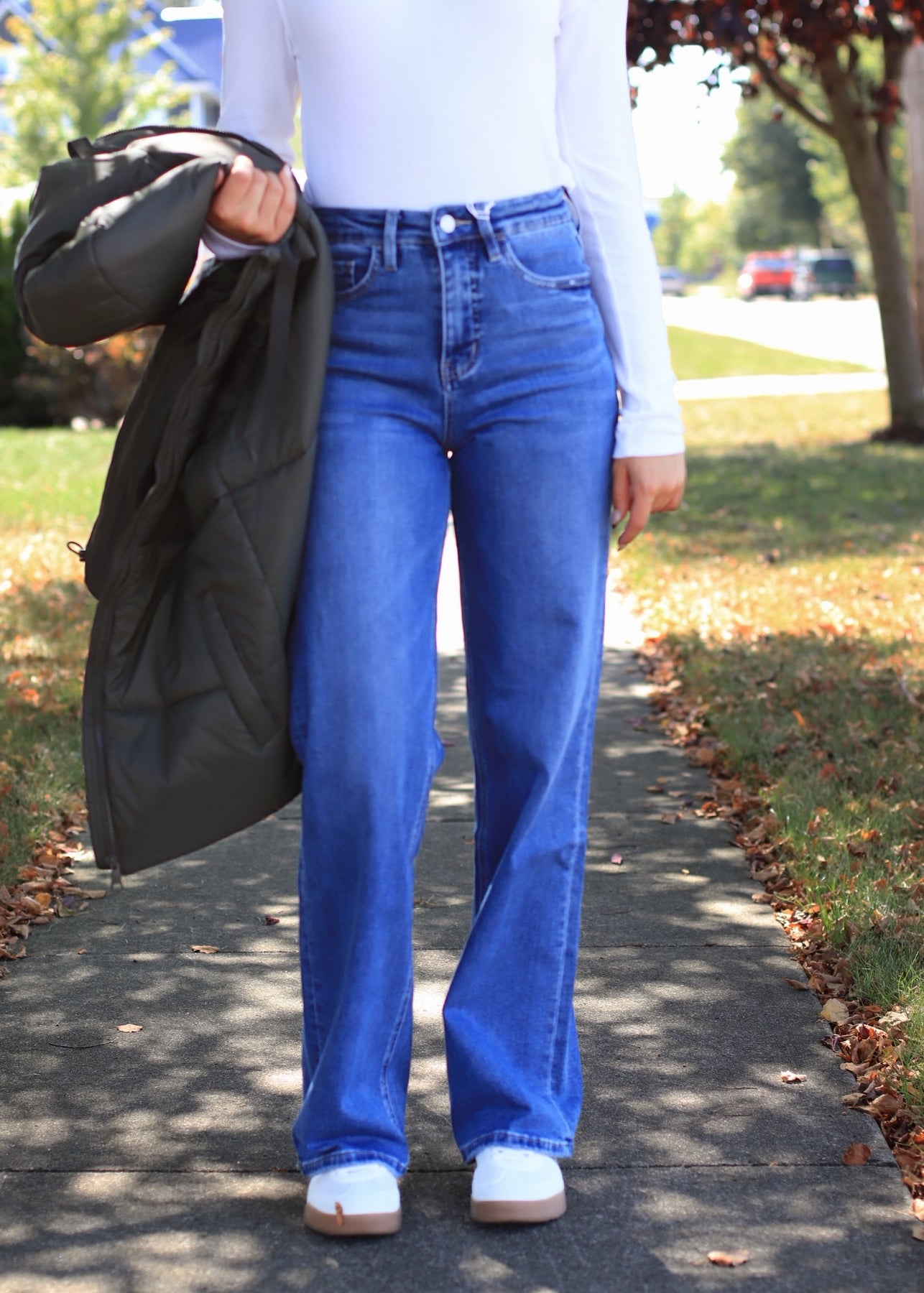 Step into retro vibes with modern comfort in our Tummy Control 90's Super High Rise Wide Leg Jeans. Crafted from soft comfort stretch denim, these jeans feature a super high-rise waist and wide leg silhouette, giving you that iconic '90s look with a flattering, updated fit.