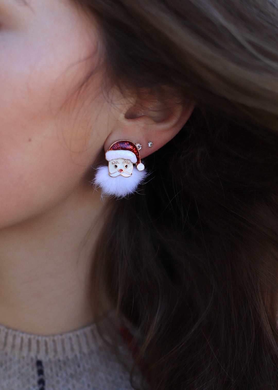 Enamel Santa Claus Fuzzy Beard Stud Earrings