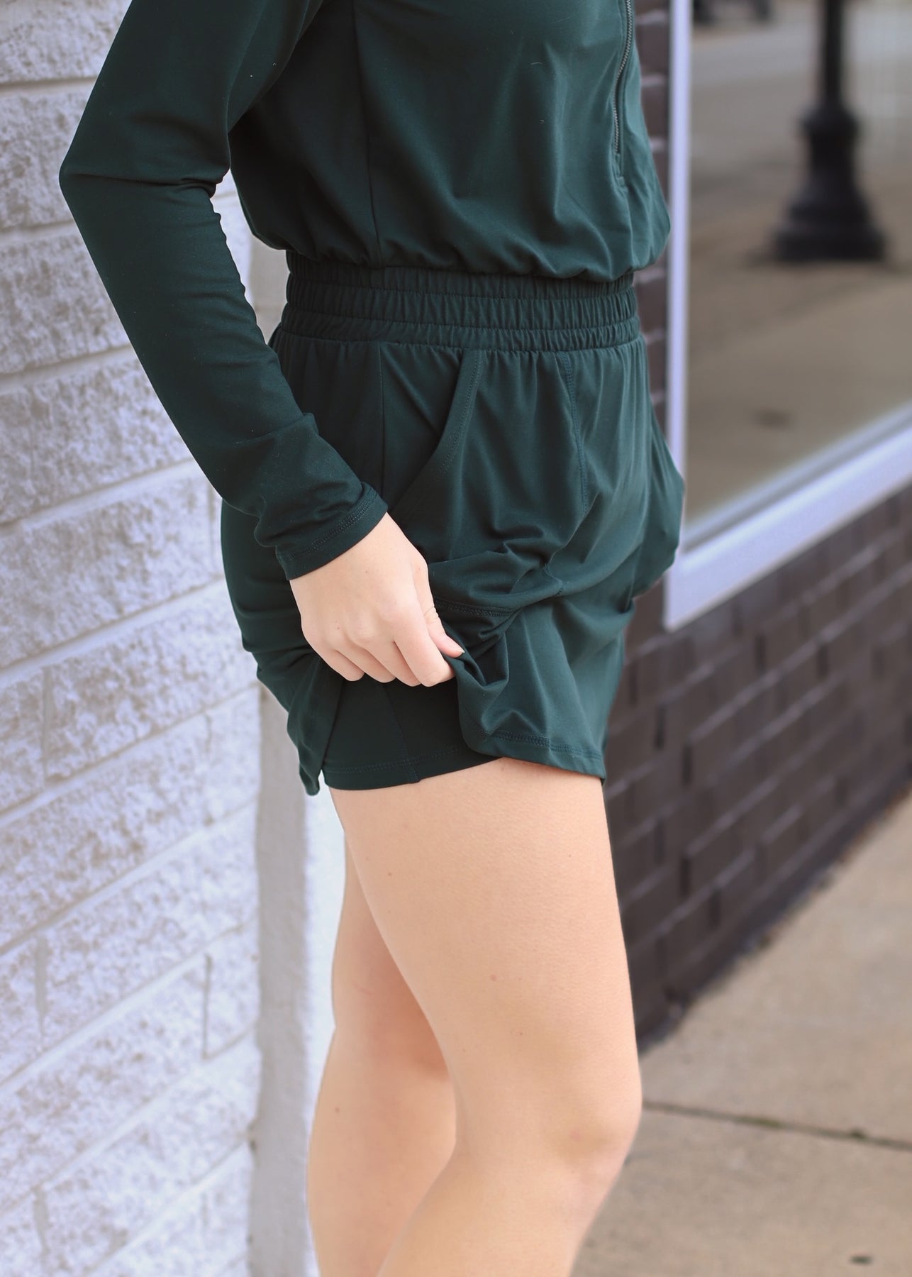 Butter Soft Quarter Zip Romperskirt in Regency Green