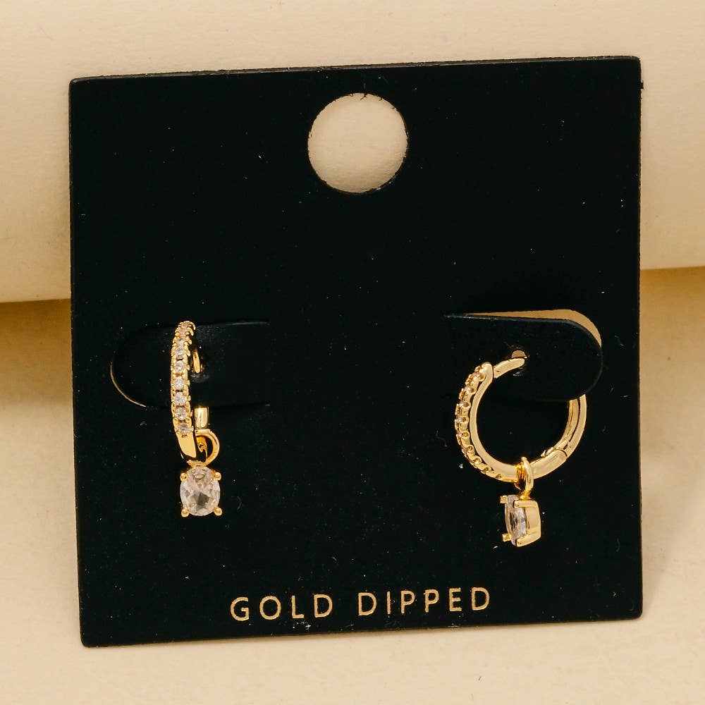 This piece is the epitome of sophistication and elegance, this pair of hoop earrings radiates a sleek gold dipped cubic zirconia pave and gem charm design. This pair of hoop earrings is a great way to add some flair to your outfit without going over the top. Available in NO COLOR. This item is sold in packs of 1.