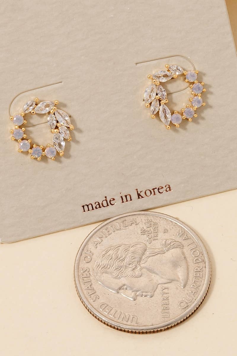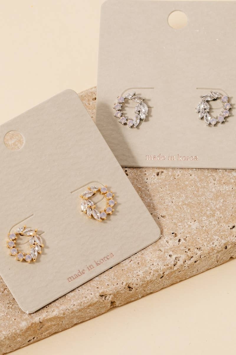 This pair of stud earrings is made with 50% Brass and 50% Cubic Zirconia.