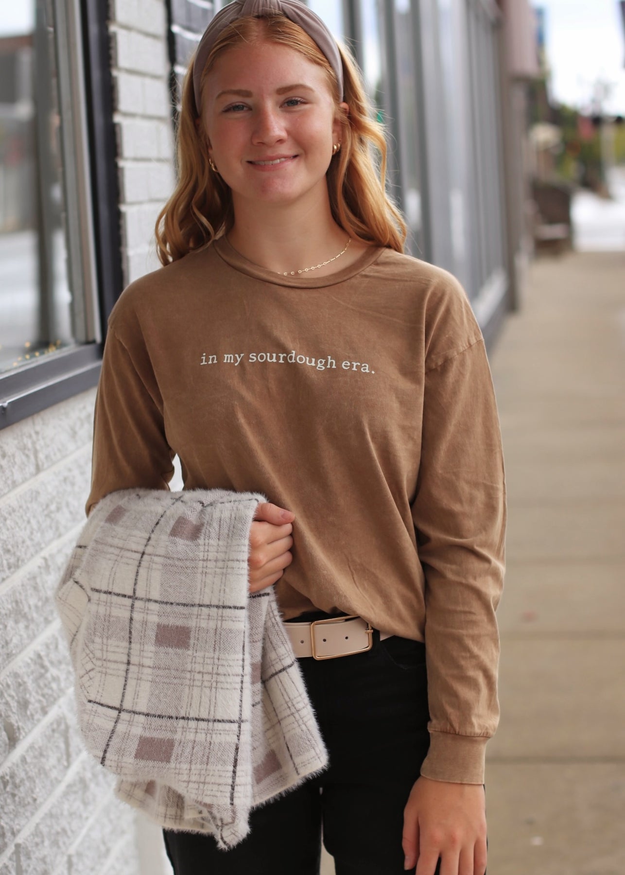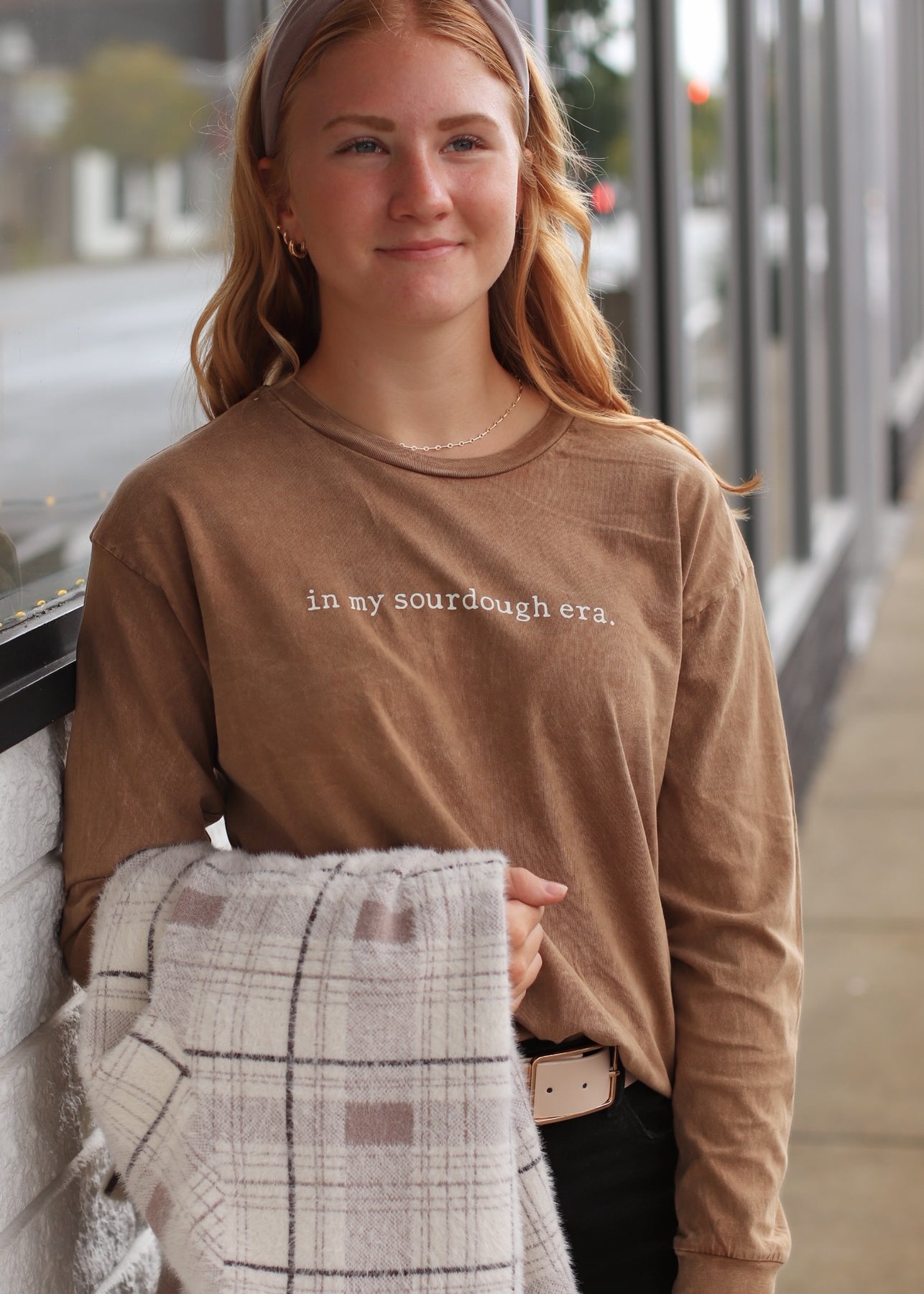 IN MY SOURDOUGH ERA. Mineral Washed Long Sleeve Graphic Top