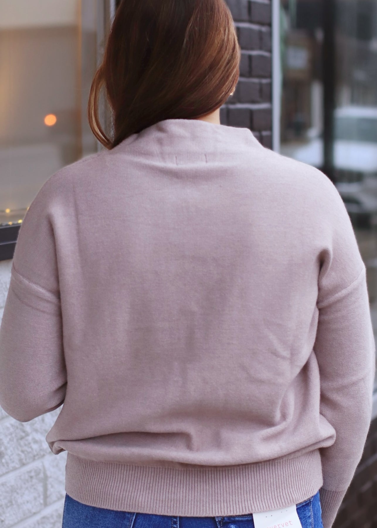 Discover refined comfort with this elegant funnel neck sweater. Crafted from a luxuriously soft, fine-gauge knit, it boasts a relaxed silhouette with dropped shoulders for an effortlessly chic drape. The design is elevated by distinctive, extra-long ribbed cuffs and a matching wide ribbed hem, adding a touch of modern sophistication. This timeless piece is the perfect staple for creating polished and cozy looks for any occasion. -Model is 5'6" in a medium.
