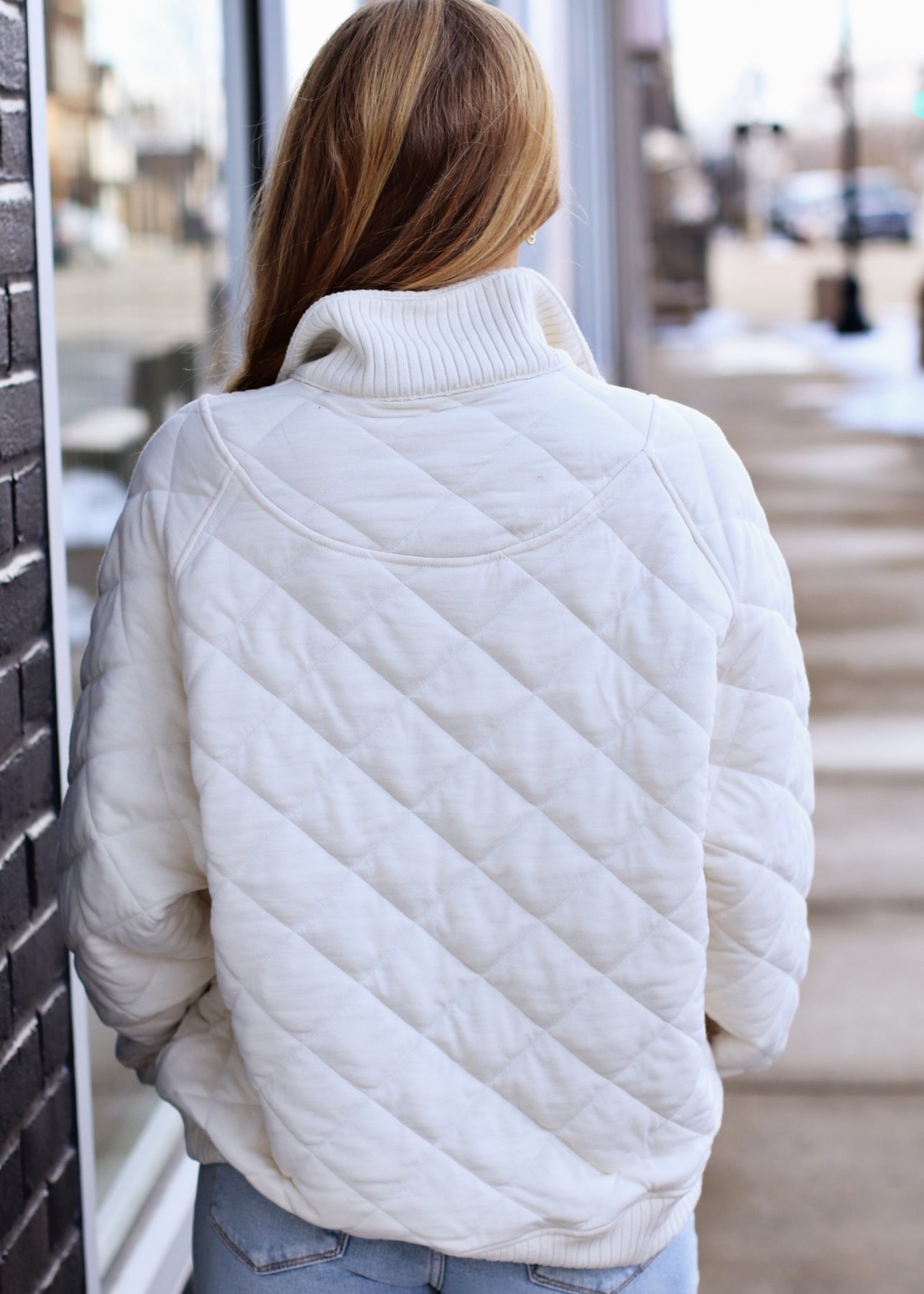 Wrap yourself in pillowy-soft comfort. This oversized pullover is made from quilted fabric that feels light yet warm, featuring a snap-button mock neck, raglan sleeves for natural movement, and ribbed trims that keep the fit in place. An easy layering piece for everyday adventures and laid-back days outside.
