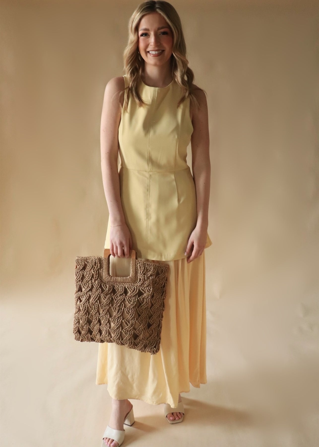 Light, bright, and easy to love. This soft yellow dress features a layered silhouette that adds gentle movement and dimension, finished with a zipper closure for a clean, streamlined fit. Fully lined for comfort and coverage, the lightweight polyester fabric drapes beautifully without feeling heavy. Whether you’re headed to a shower, brunch, or a sunny-day event, this dress brings just the right amount of sweetness.
