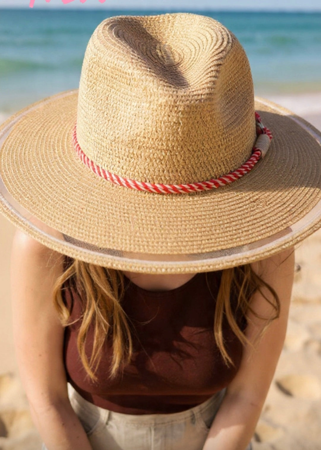 A unique and stylish piece that sets you apart, this sun hat carries a charming striped rope flat brim straw design. Transform your outfit into a fashion masterpiece with this versatile sun hat, an essential for the style-conscious individual. Available in BE, WH. This item is sold in packs of 1.