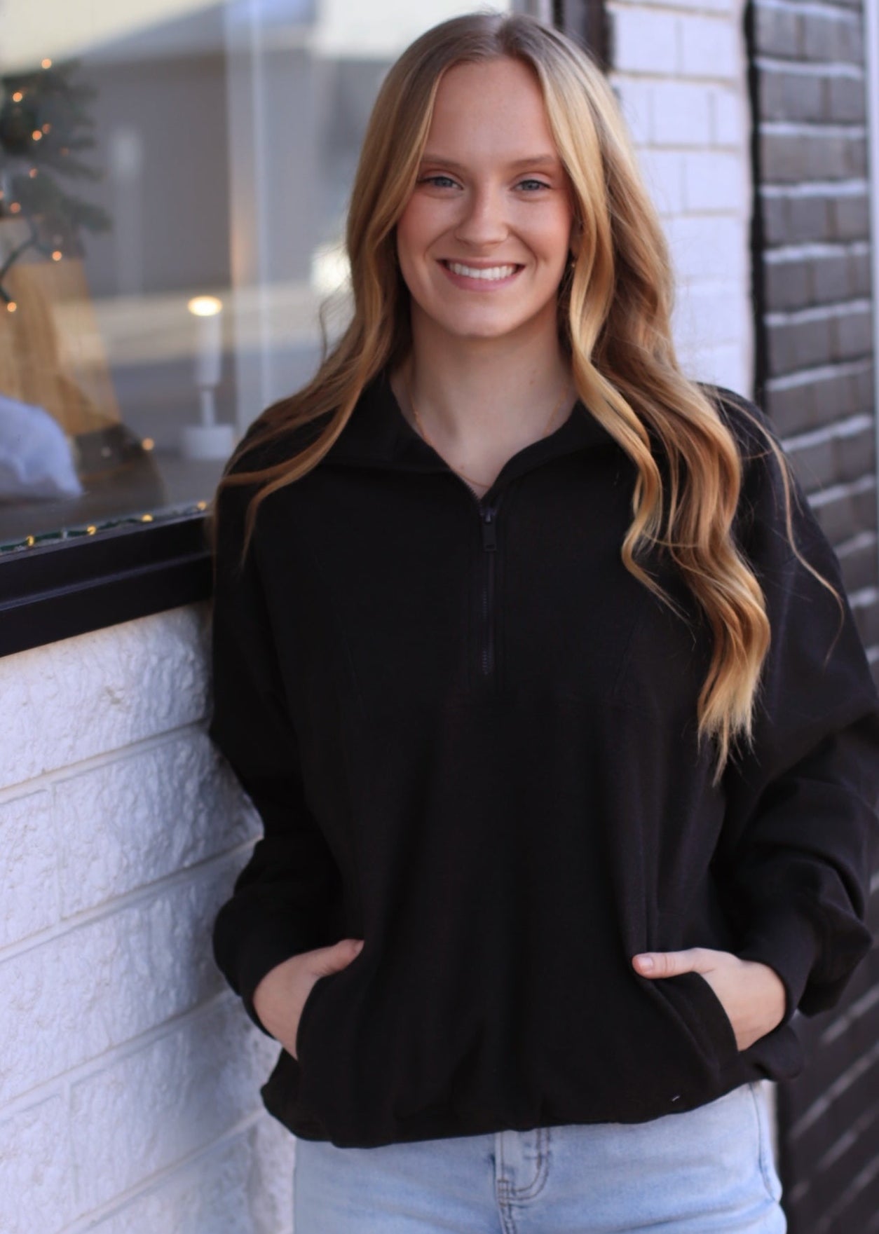 The Luxe Rib Zip Pullover in Black