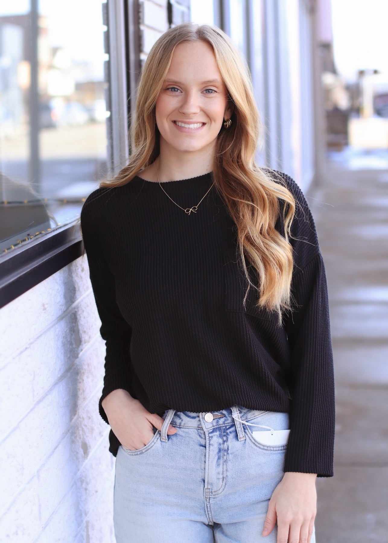 Start your day in effortless comfort with The Routine Top. This soft ribbed knit features long sleeves, front pockets, and a relaxed silhouette that’s made for movement (and coffee runs). The lightweight stretch fabric blend of polyester, rayon, and spandex keeps it cozy yet breathable—perfect for layering or lounging. Pair it with denim, leggings, or your favorite joggers for that “put-together without trying” look.
