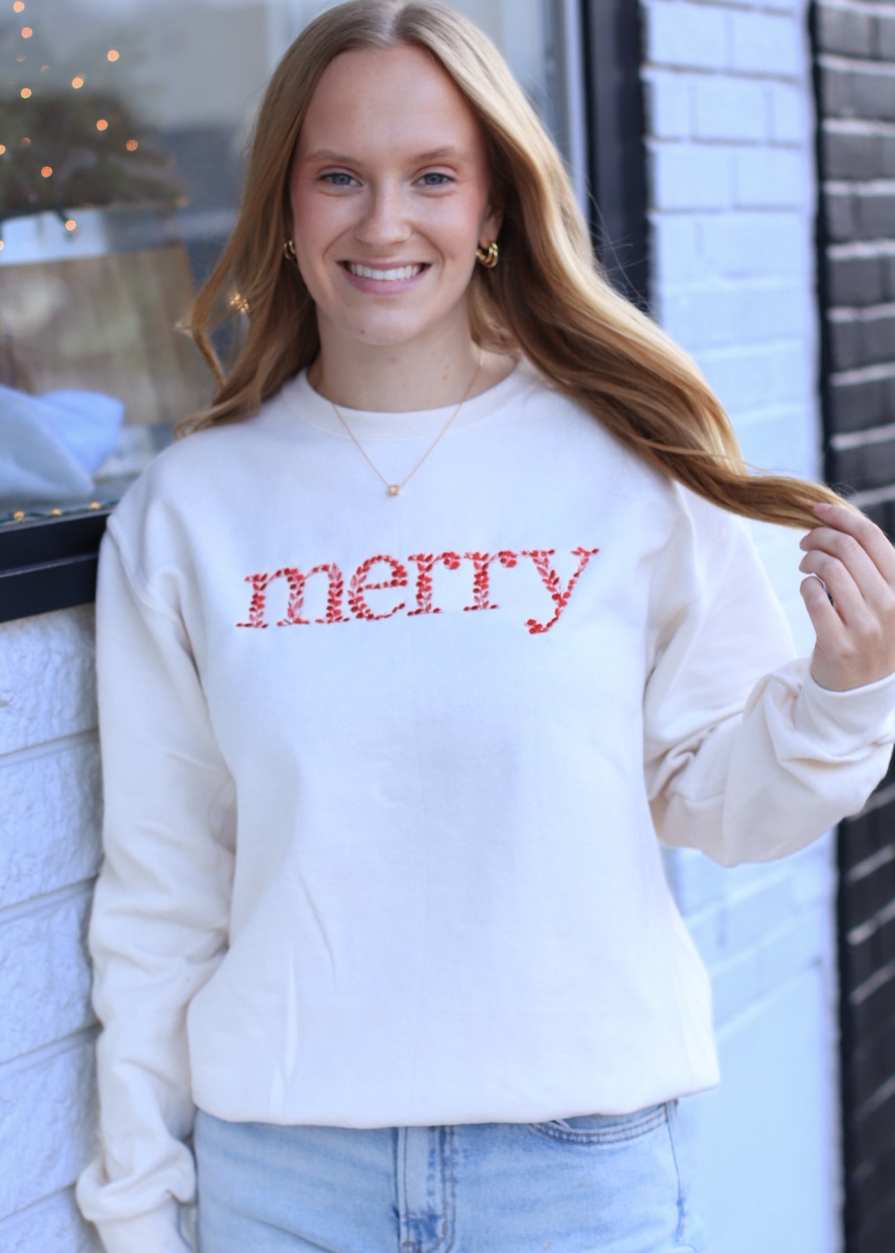 • Elegant Embroidery: “Merry” stitched in rich red with charming floral details for a sophisticated holiday touch. • Soft & Cozy: Made from high-quality, durable fabric that keeps you warm and comfortable all season long. • Timeless Style: Blends festive cheer with a chic, feminine aesthetic—perfect for holiday parties, Christmas morning, or everyday wear. • Versatile Fit: Easy to pair with jeans, leggings, or your favorite winter accessories for effortless styling. • Gift-Ready: A thoughtful holiday gift for anyone who loves combining comfort with seasonal flair.